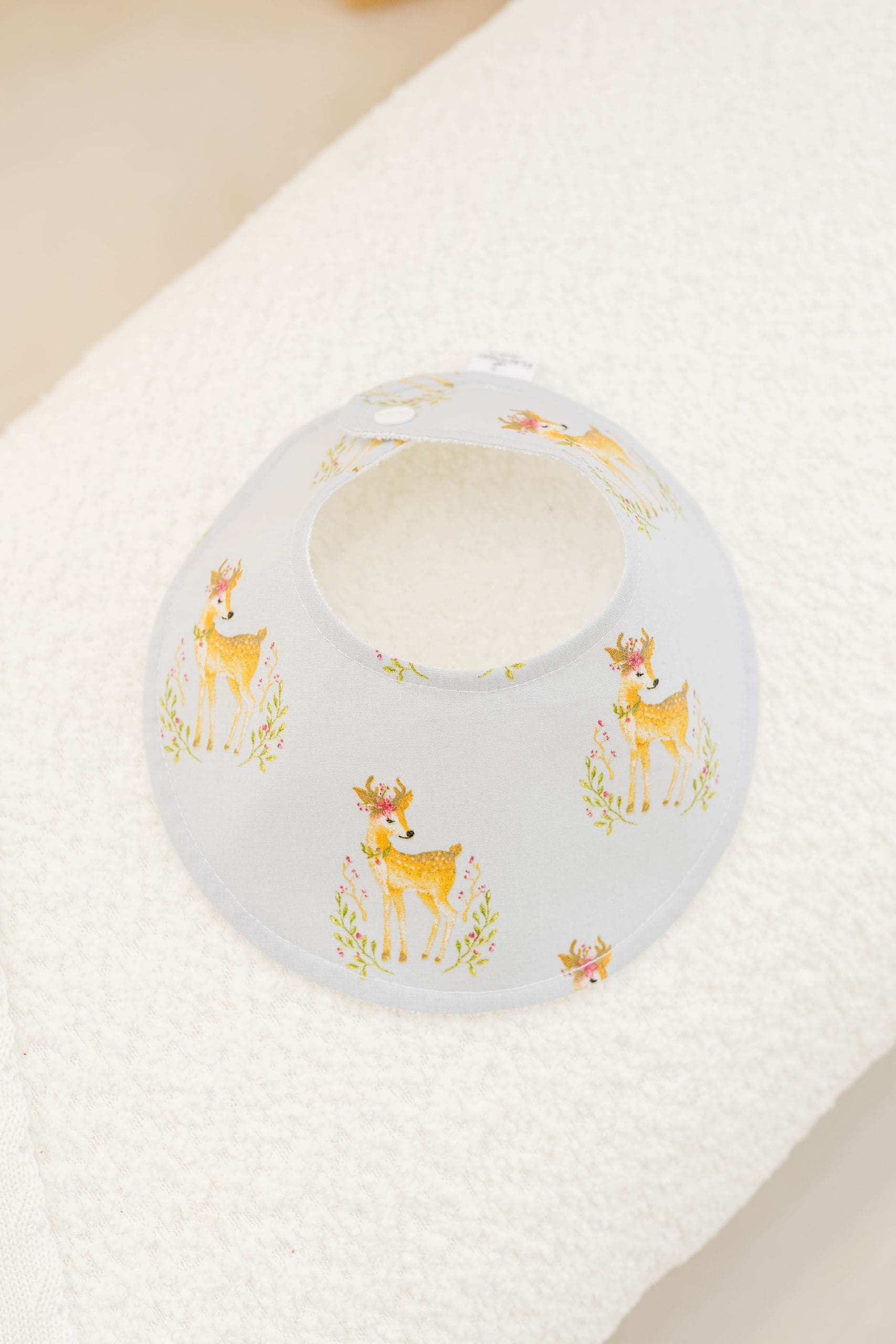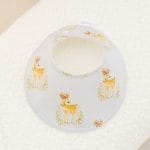 O babete tem forro impermeável que não deixa repassar a baba, protegendo o peito do bebé da humidade.