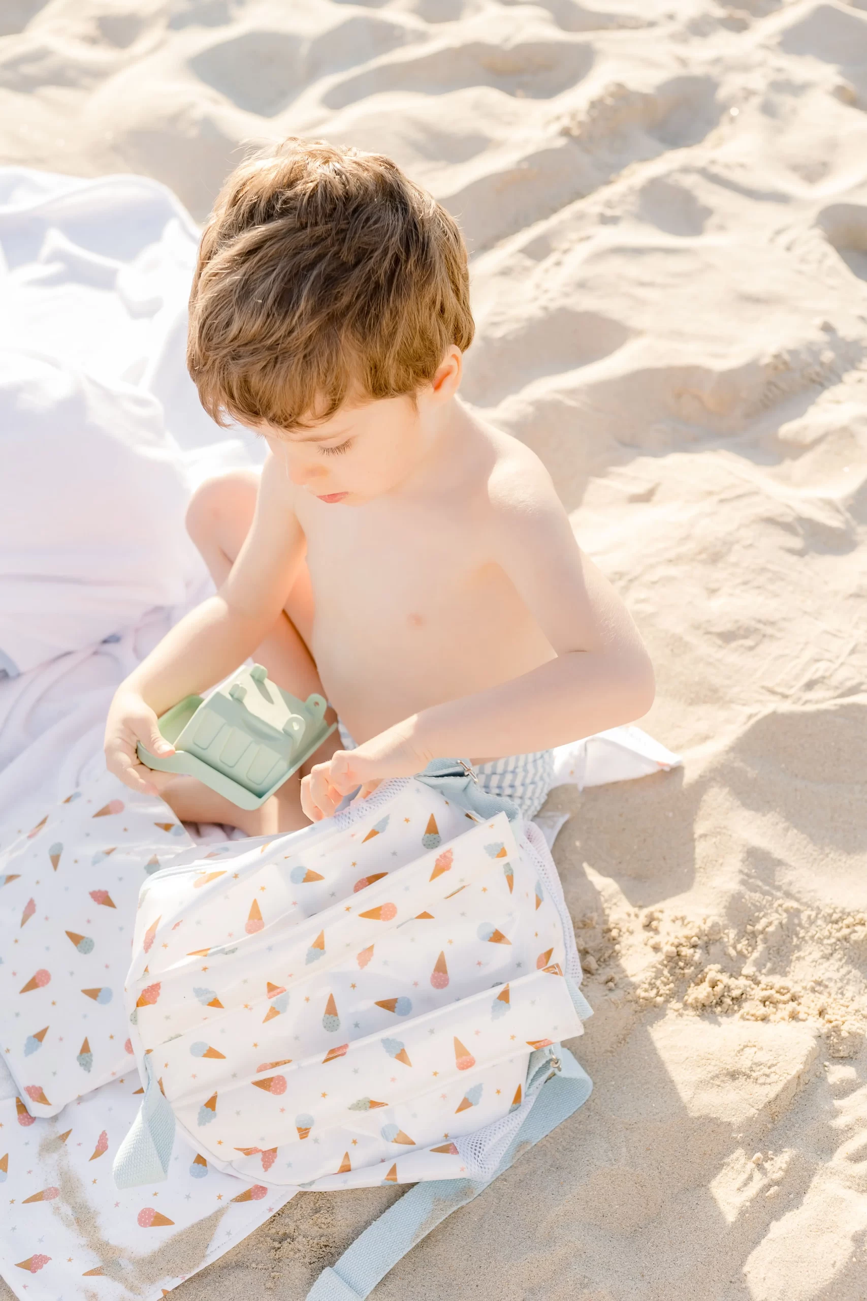 As mochilas de rede foram pensadas para que a areia vá saindo no percurso até chegares ao carro/casa e assim evites aquelas areias por todo o lado!